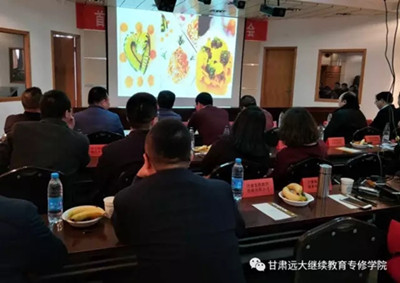 1.甘肅遠大繼續教育專修學院,副院長岳青栓介紹了學院資質,團隊建設,網絡教育成人高考學歷類招生具體情況,并介紹了 合作方案。