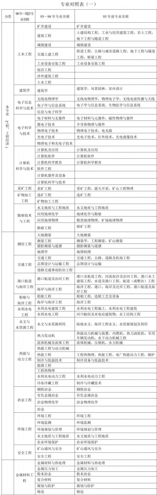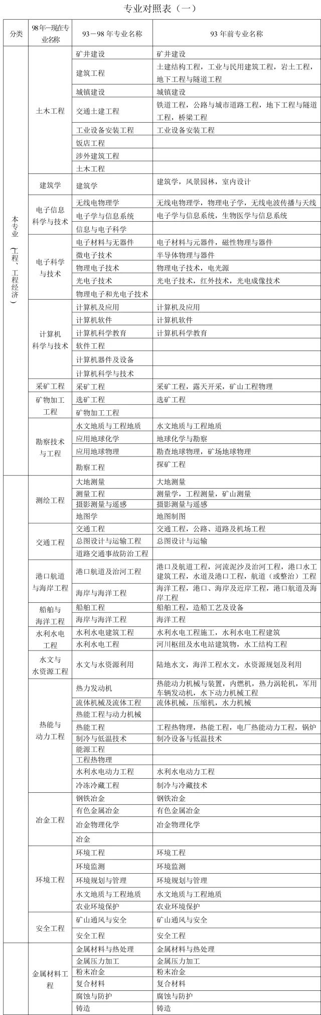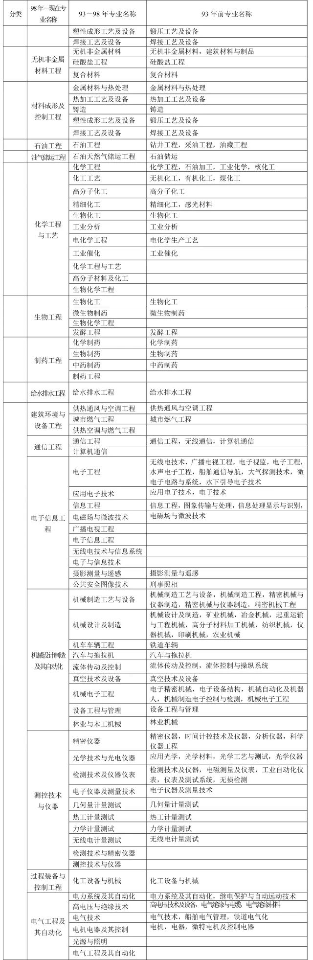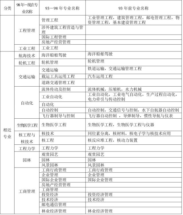 1、本表按教育部現行《普通高等學校本科專業目錄新舊專業對照表》編制,共涉及“土建類、測繪類、水利類、交通運輸類、能源動力類、地礦類、材料類、電氣信息類、機械類、管理科學與工程類、生物工程類、化工與制藥類、工程力學類”等18類45個專業,其中本專業36個,相近專業9個。