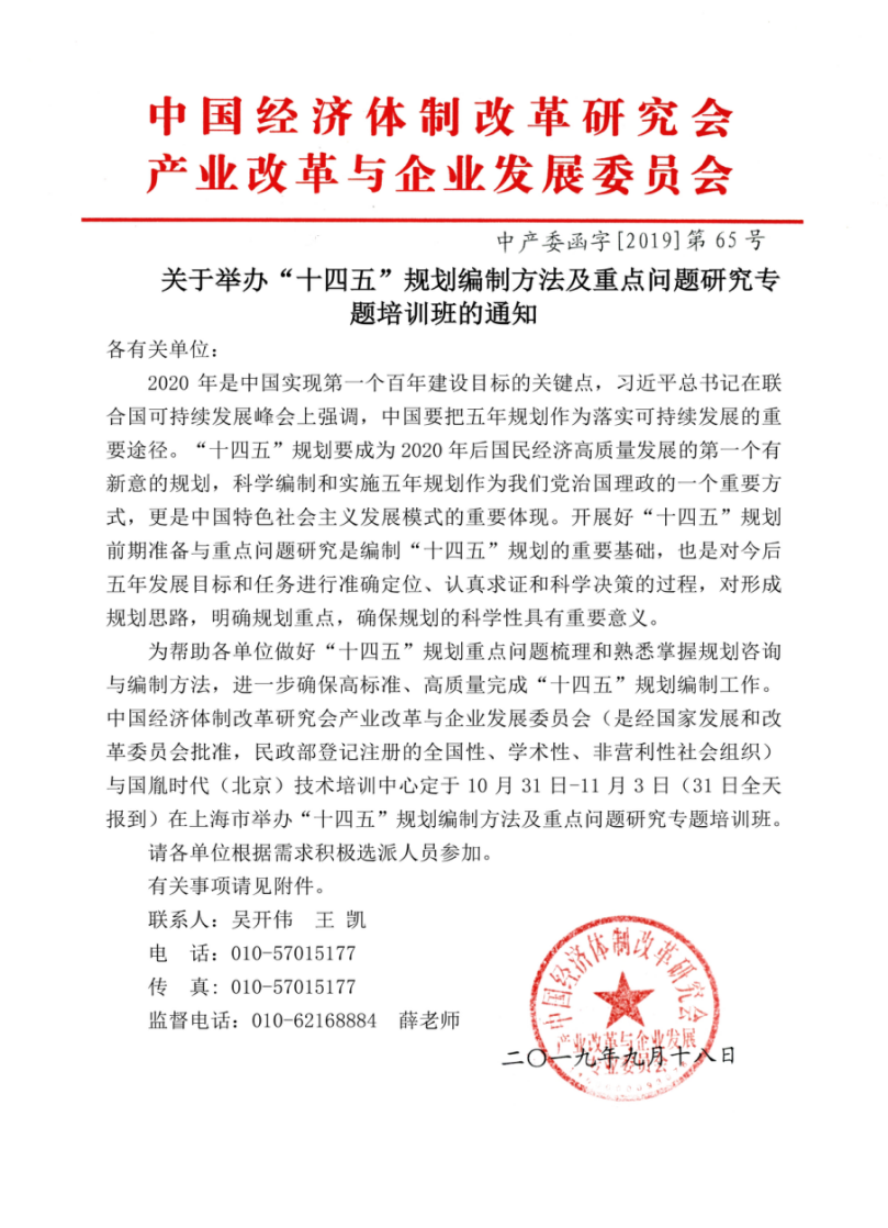 本期培訓(xùn)班擬邀請(qǐng)國(guó)家發(fā)改委“十四五”規(guī)劃總體思路起草專家組成員、發(fā)改委宏觀經(jīng)濟(jì)研究院、清華大學(xué)、中咨協(xié)、規(guī)劃評(píng)估等機(jī)構(gòu)的領(lǐng)導(dǎo)和專家進(jìn)行授課。以領(lǐng)導(dǎo)、專家授課為主,通過(guò)最新政策動(dòng)向介紹、專題輔導(dǎo)、典型經(jīng)驗(yàn)交流、現(xiàn)場(chǎng)互動(dòng)等方式相結(jié)合,培訓(xùn)班將提供最新參考資料。