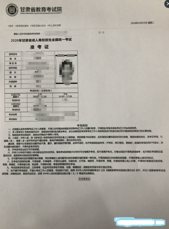 各位同學,成考準考證于明日(2020年10月21日)開始打印,溫馨提示: