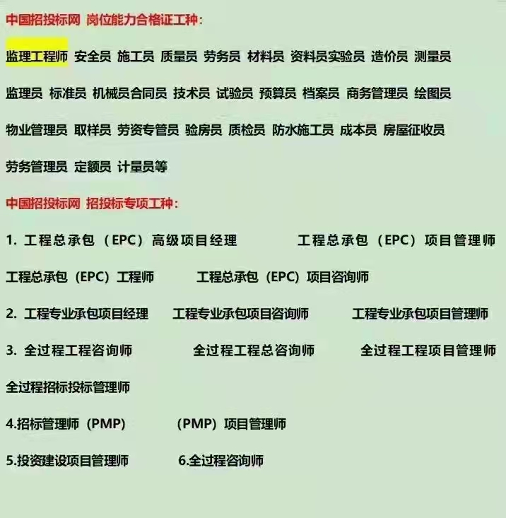 安全員、施工員、質量員、材料員、造價員、測量員、監理工程師