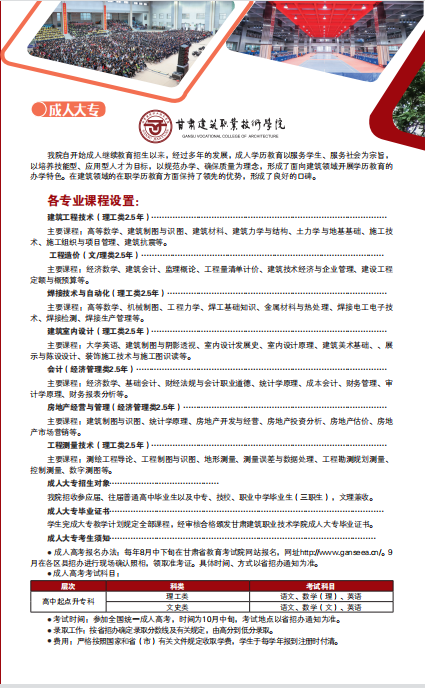 甘肅建筑職業(yè)技術(shù)學院成人高等教育2021年招生簡章