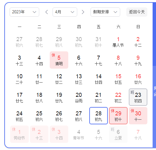 4月29日至5月3日放假調休,共5天。5月6日(星期六)正常上班。提前預祝各位同事五一勞動節快樂!好好工作,天天向上!