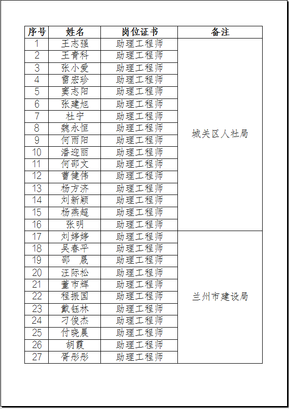 根據(jù)蘭州市職稱改革領(lǐng)導(dǎo)小組辦公室等管理規(guī)定,蘭州市建設(shè)工程專業(yè)中級(jí)職稱評(píng)審委員會(huì)評(píng)審,蘭州市住房和城鄉(xiāng)建設(shè)局發(fā)文,甘肅省人力資源服務(wù)有限公司報(bào)送。凡通過評(píng)審合格者,獲得初級(jí)助理工程師職業(yè)資格證。